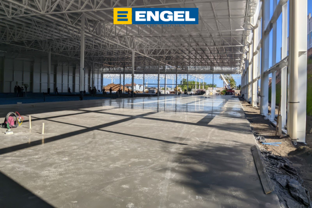 Execução de 8900m² de piso sobre laje, 11500m² de piso sobre solo, 2000m² de calçadas com instalação de piso tátil e 5000m² de lapidação superficial resinada com Engel Selador.